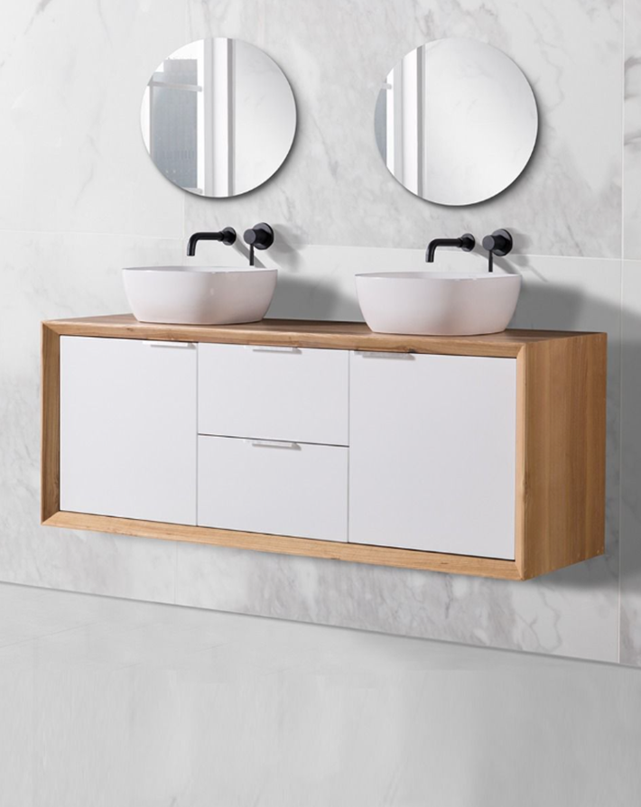 There’s a wide range of 1500 vanity units in different designs and installation options. Wall-hung vanities make mopping the floor easier, while floor-standing cabinets provide plenty of storage space for your essentials. You can choose between single and double-bowl 1500 vanity units, depending on your needs. When making a final decision, consider the finish, such as matte white, timber, white gloss, or black gloss, to suit your bathroom style. Full-depth storage is another important feature for keeping hairdryers, spare towels, toiletries, and other everyday items organised and easy to reach.