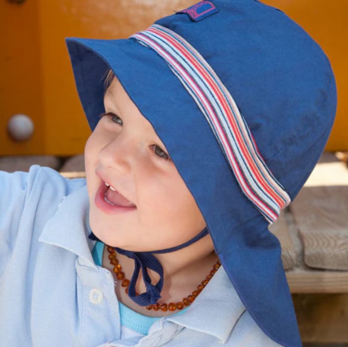 Linen, of course, is another summer superhero. Naturally wicking, the fabric has a loose weave that provides lots of airflow. Sure, it wrinkles easily, but part of the charm in a baby linen hat lies in those wrinkles – and they don’t compromise its sun-safe qualities in the slightest.